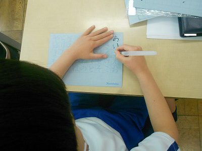 「はね」「止め」「はらい」に気をつけて、自分の名前やひらがなを練習しています。