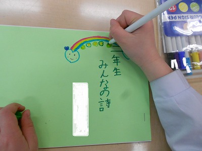 国語の時間に作った詩をお清書して、詩集を作っています。