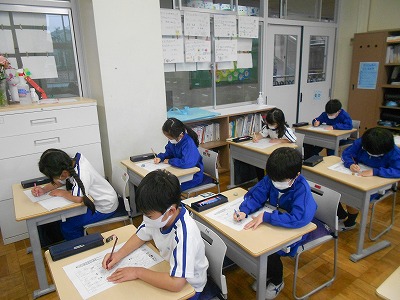 書写教材「うつしまる」を仕上げたり、漢字の復習をしたりしました。