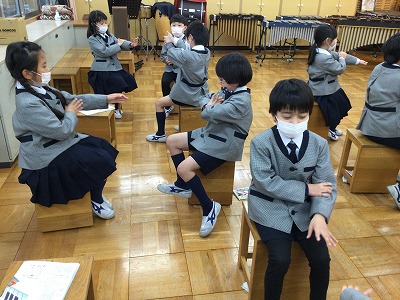 校歌や聖歌を歌う練習した後は、教科書やレパートリー集に載っている遊び歌を歌って発表して楽しみました。