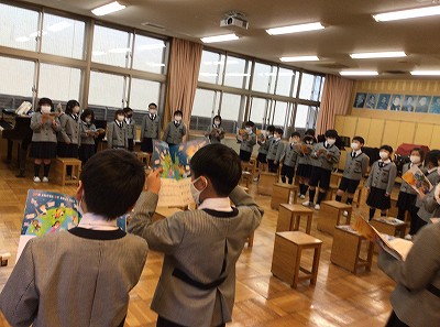 子どもたちから「帰りの会も英語を交えて取り組みたい」との声を受け、練習をスタートさせました。二学期の後半には流れを理解し、スムーズに進行できるまで頑張ってもらいたいと考えています。