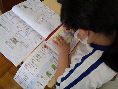 書き順、読み方を確認し、一字一字丁寧に書き進めていました。
