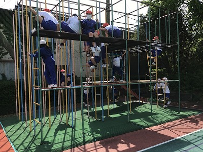 「リレー」の学習を行いました。新しい赤組と白組での対戦は2回戦を行い、一勝一敗といい勝負を繰り広げています。
