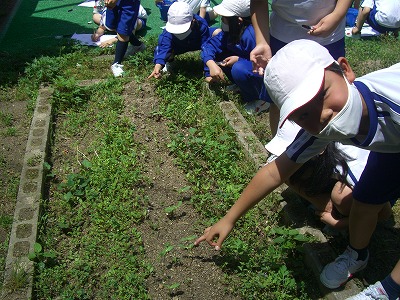 今日は、4月に種まきをしたホウセンカを観察しました。