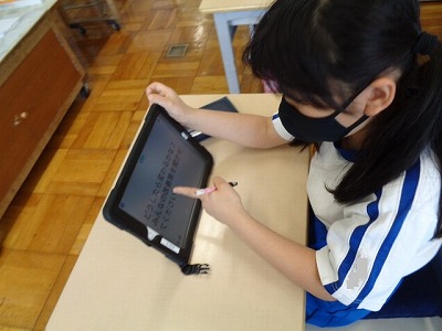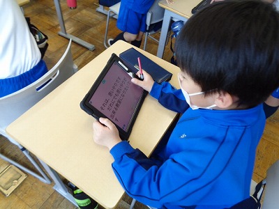 自分達のクラスのおしいところや良いクラスに向けて何が大切か。改善するためにどんなことができるかなどを考え、タブレットのテキストに書き込みました。