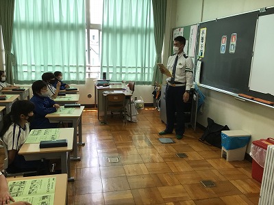 川端警察署の方から、交通ルールやマナーを守ることの大切さについてご指導いただきました。