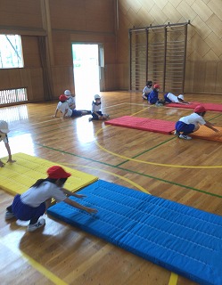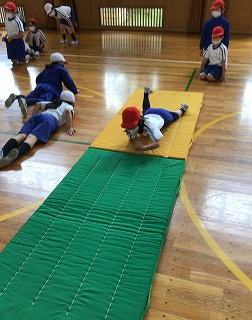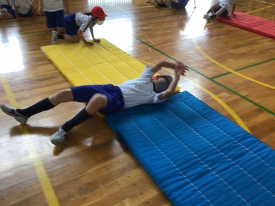 まずは簡単なマットの技から挑戦して、楽しみました。
