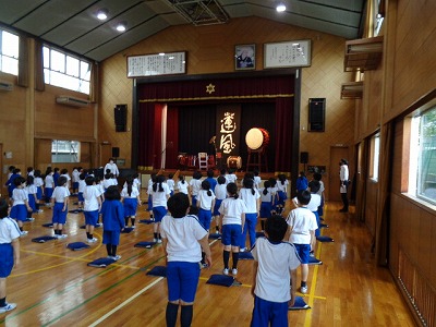 体育館に移動し、鑑賞会をしっかり「聴く・感じる・味わう」をめあてに臨みました。