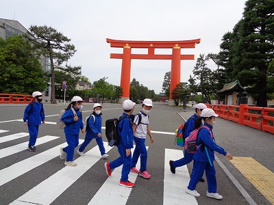 銀閣寺前の公衆トイレで少し休憩後、さらに学校までテクテク歩きます。