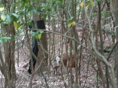 途中、シカに遭遇!子どもたちは大喜びです。