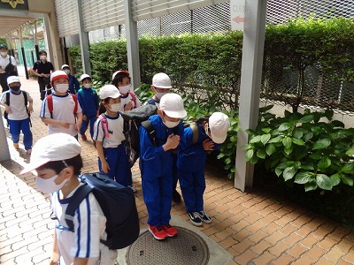 少しの時間、社会科の学習を交えた地形・方角調べに取り組みました。