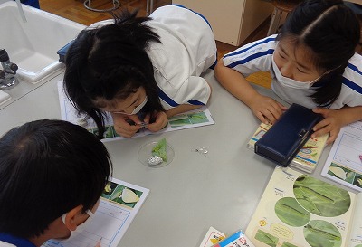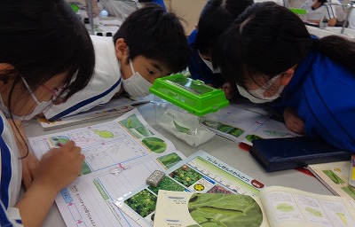 今日は新しい葉をあげて、幼虫を飼育ケースに入れました。活発に動く様子もみられます。