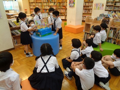 午後は、図書係さんの読み聞かせと貸し出しです。