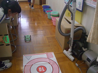 前回、「的当てゲーム」で、ゴムを使って車を狙ったところに進める体験しました。