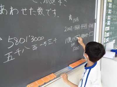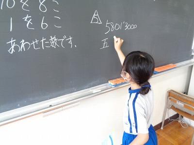今日は、大きな数を位ごとに分けて考える活動を行いました。