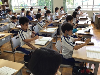 教室では、新しい曲「ソロサンマ」のリコーダー奏の練習を行いました。弾むようなリズムに加えて、「ソ」と「ラ」が素早く動く曲です。この「ソロサンマ」を演奏した後の「おやすみ」(ラとシで構成された曲)のリコーダー奏では、3年キッズのやわらかい音色が響きました。