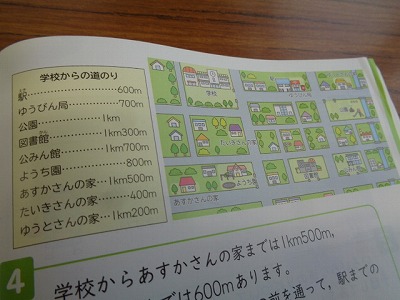 「○○から学校の前を通って、○○までの道のりはどれだけですか。」