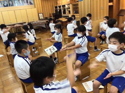 お手本の音楽は一回目より二回目が、ぐんと速く演奏されます。バッチリの動きには、もう少し時間が必要なようです。