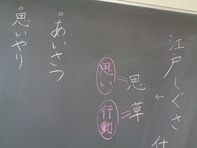 一校時の学級活動は「江戸しぐさ」を調べました。