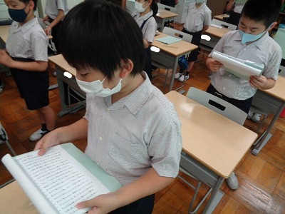 至難の修行が始まりましたが、賞状がもらえるとあって、やる気を持って練習をがんばっています。登場人物に合わせて声を変えたり、感情表現を意識している子もいます。