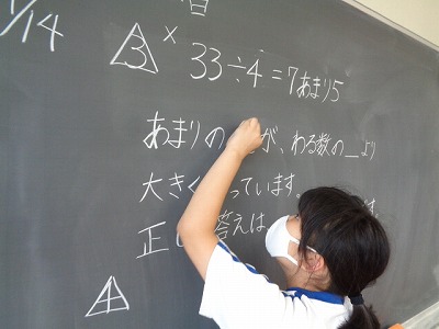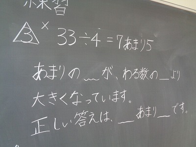 今日は、計算練習とあまりのあるわり算の間違い説明を行いました。