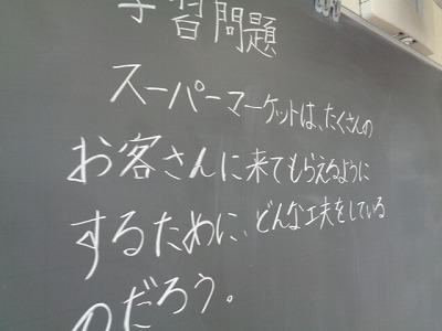 後半は、「商店のはたらき」を進めました。前時でまとめたお買い物調べをもとに学習問題を立てました。