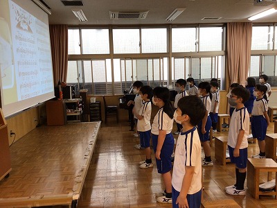 台風の接近に伴い、雨の多い一週間となりそうですが、安全と体調に気をつけることを朝の会で話しました。少し控えめの暑さとなりそうですが、水分補給を忘れずに力をぐんぐん伸ばしていきます。