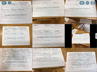 最後は、お互いが書いたものを読み合い、「同じ曲を選んだけれど、感じ方が違う」「あのこと、よく似たことを考えているんだな」と、受け止め方のいろいろを共有する時間です。韓国の子どもたちが歌う「半月(バンダル)」には、多くの子が選んでいました。