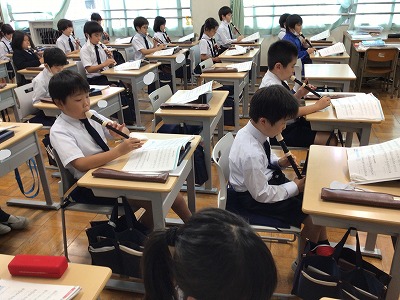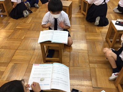 教室では「♪森のささやき」のリコーダー奏で“輪奏”にチャレンジしました。