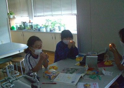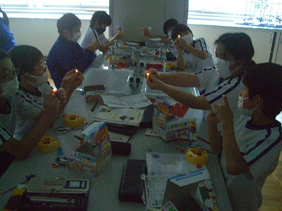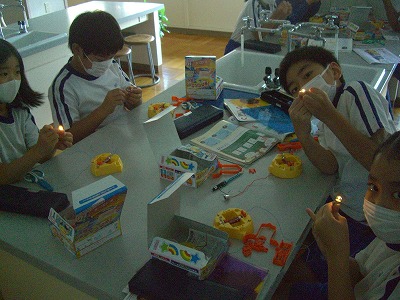 はじめは、なかなか明かりがつかなかったのですが、何人かができると、すぐに出来た人から電気が流れるポイントを教わり、豆電球を光らせることが出来ました。