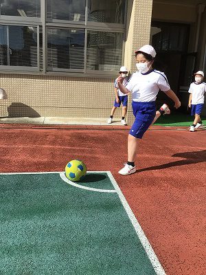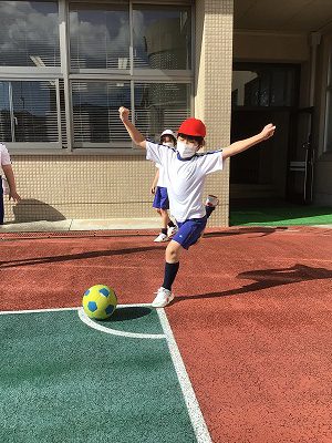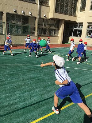 キックベースの学習です。今日は、4チーム対抗で総当たり戦をしました。