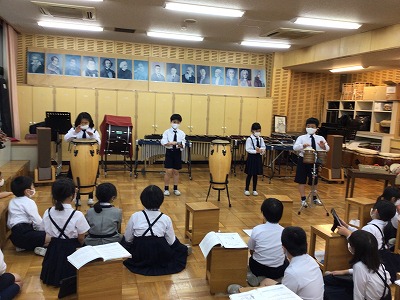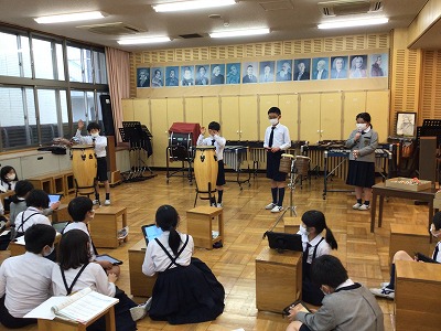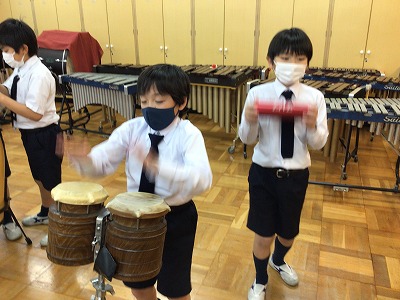 カバサやコンガ、ボンゴを巧みに操り、曲に合わせた発表に進みました。