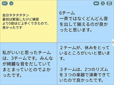 ロイロノートに送ってくれたシートです。練習の成果が出ていた喜びや、他のチームの良さを伝えています。