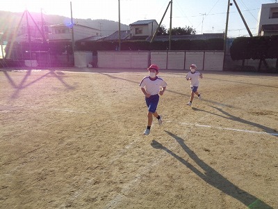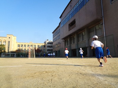 気持ちの良い青空の下、お日様の日差しにパワーを感じて活動する3年生。