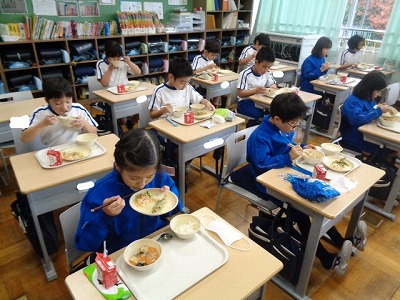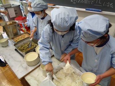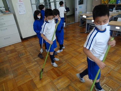 給食の時間から見通しを立て、チャイムと同時に掃除が取り組めるように意識しています。