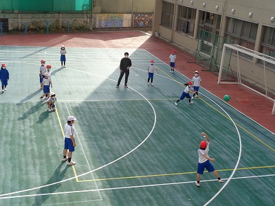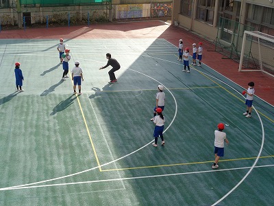 朝晩は冷え込む一週間ですが、昼間は、日差しの下で、温もりを感じながらドッジボールを楽しむ子どもたちと担任です。