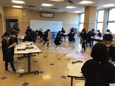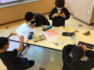2学期最後の図工は、造形室から離れて<多目的室>での活動です。