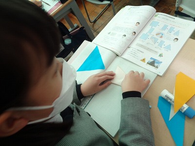 算数では、二等辺三角形や正三角形の「角」について学習しました。