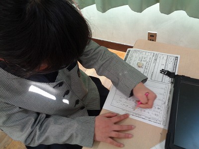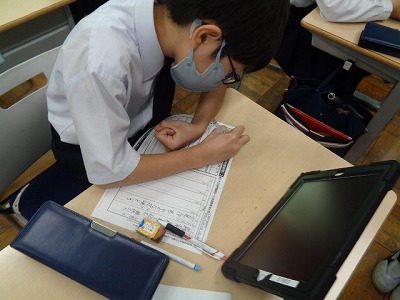 学習の後半は、タブレットを用いてMr.Yokoyamaの問題に取り組みます。