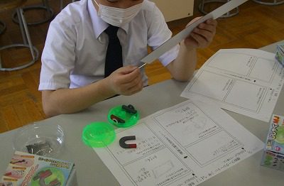 2枚の磁石シートは、どんな磁石なのか、試行錯誤しながら考えます。