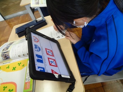 また、標識調べを行い、興味をもって意欲的にワークシートをまとめていました。