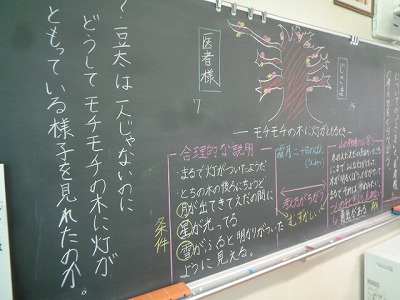 今日は、モチモチの木に灯がともることについての「じさま」と「医者様」の考え方を比べました。