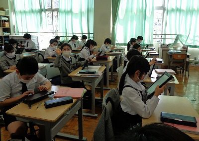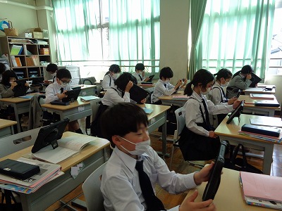 昼間には、25℃に近づき、日差しが教室に届くと、暖かいを通り越して少し暑く感じている3年生でした。