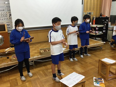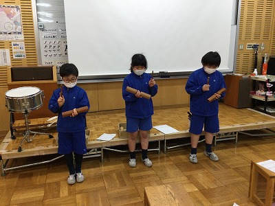 前の時間から仲間入りした“小太鼓&大太鼓”の担当を入れ替わったり…