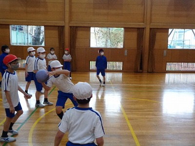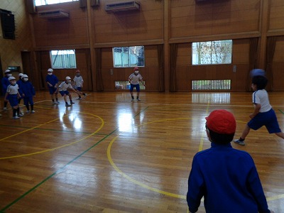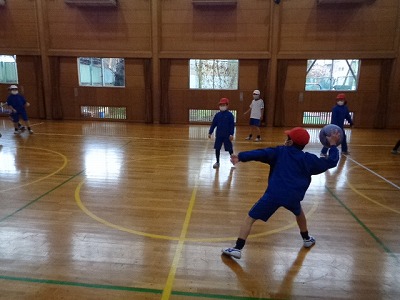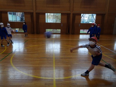 赤・白に分かれて、5分間ドッジやダブルドッジ、王様ドッジなどに取り組みました。
