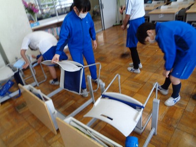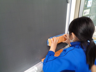壁磨きや机・椅子の脚拭きなど、学年末の掃除に相応しいピカピカの教室を目指しました。