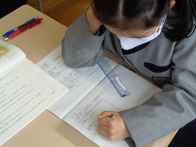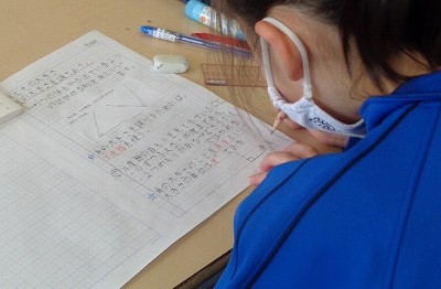今日から、教科書の内容「角とその大きさ」の学習が始まりました。まだまだノートを取ることに一生懸命の4年生ですが、今日は3年生で行った「角」の学習のおさらいから始まり、角度をはかるために「分度器の使い方」の学習を行いました。