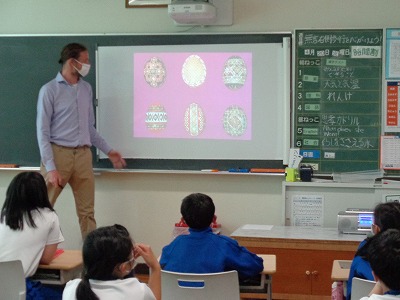 “にっぽんの歌”というコーナーで「♪さくらさくら」が紹介されています。今日は、この曲との出会いからスタートです。“見渡す限り”と歌詞にもあるように、日本を代表する桜をイメージした「日本古謡」を、4年生はやさしくゆったりと歌っていました。