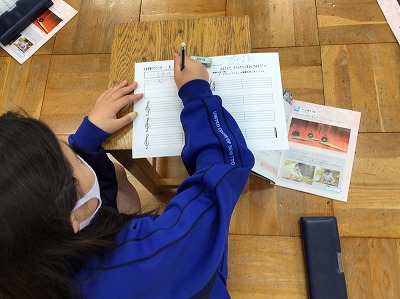 順番を待つ間、「♪さくらさくら」の楽譜を写す(写譜)活動も行いました。