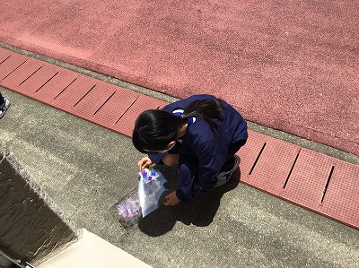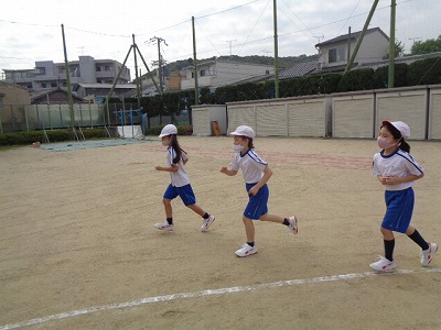 朝は、少し曇り空でしたが、ちょうど5分間のマラソンをしていると一気にお日様が差し込み、夏模様の朝を迎えました。4年生は、1周1分のペースを目指して頑張っています。暑い夏も、元気に過ごす体力もつけていきます!
